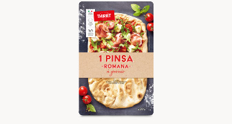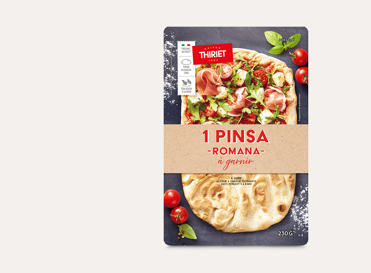 Sortez la pinsa de tout emballage et déposez-la sur une grille avec une feuille de papier cuisson. Laissez à température ambiante pendant 10 minutes, pendant que vous préchauffez le four à 240°C (Th 8). Enfournez à mi-hauteur et laissez cuire 5 minutes. A la sortie du four, garnissez-la selon vos souhaits.