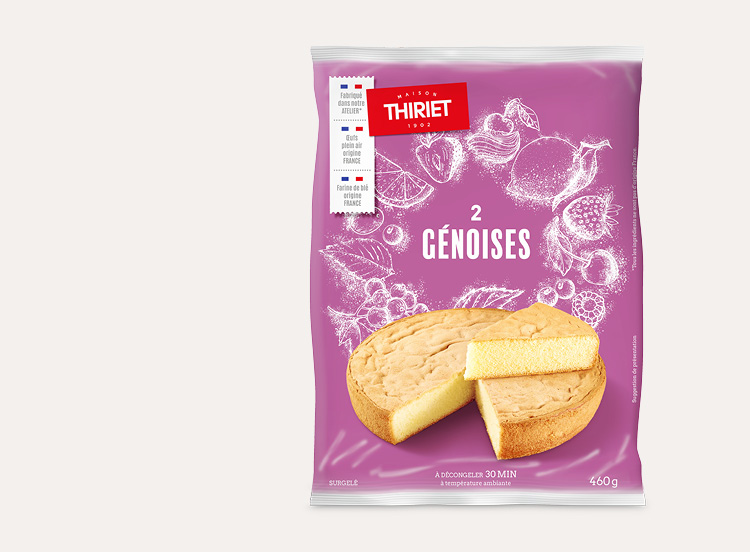 Dénomination de vente : Produit surgelé. 2 Génoises aux œufs frais