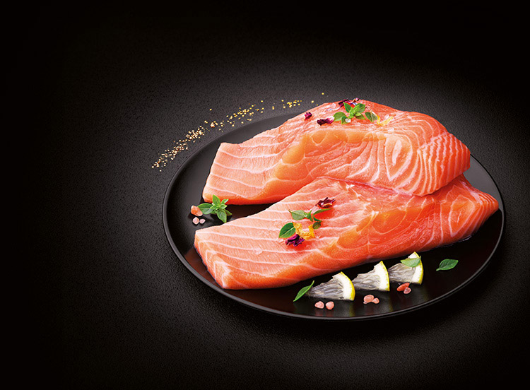 Dénomination de vente : Produit congelé. 4 Pavés de Saumon Atlantique (Salmo salar), élevés en Norvège