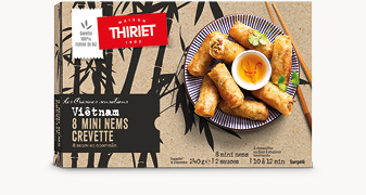Dénomination de vente : Produit surgelé. 8 Mini nems aux crevettes avec 2 sachets de sauce au nuoc mam