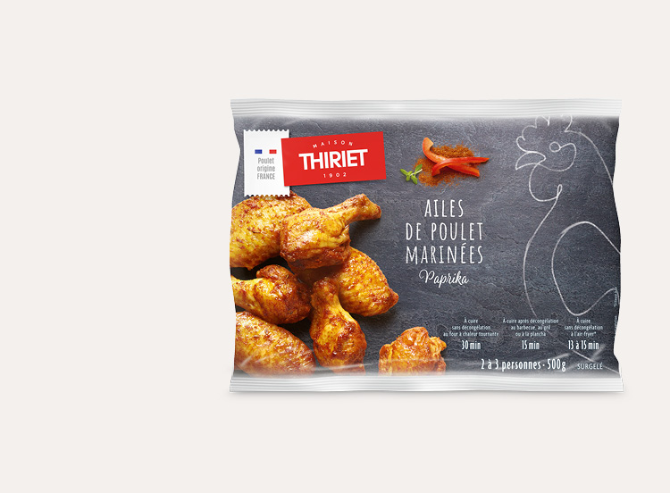 Déposez les ailes de poulet marinées encore surgelées sur une plaque recouverte d’un papier cuisson. Enfournez à mi-hauteur et laissez cuire pendant 30 minutes à 200°C (Th 6/7) (35 minutes dans un four traditionnel).