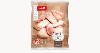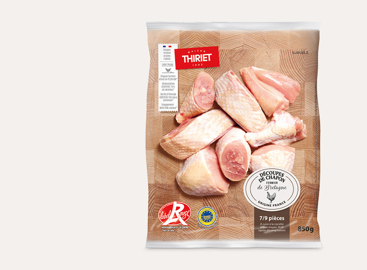 Dénomination de vente : Produit surgelé. Découpes de chapon fermier Label Rouge de Bretagne, élevé en plein air, classe A