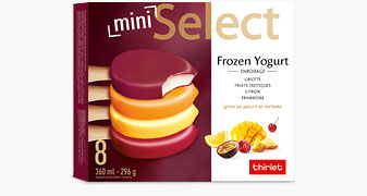GLACE AU YAOURT 61%, ENROBAGE SORBETS FRAMBOISE - GRIOTTE - FRUITS EXOTIQUES - CITRON 39%.