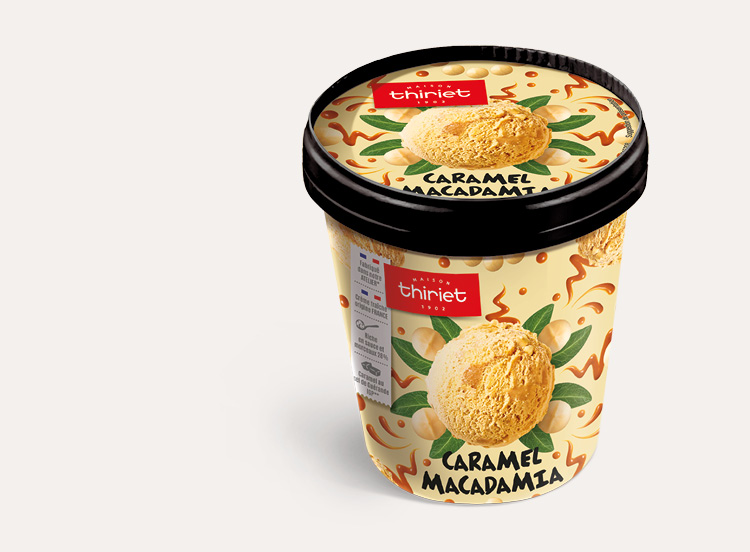 Idéale pour une pause gourmande, cette délicieuse crème glacée au caramel salé à la crème fraîche origine France est agrémentée d'éclats de caramel aux noix de macadamia avec une sauce au caramel salé au sel de Guérande IGP**. Un pur moment de plaisir !