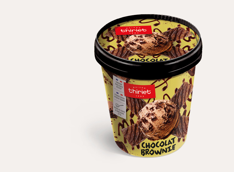Idéale pour une pause gourmande, cette délicieuse crème glacée chocolat façon brownie à la crème fraîche origine France est agrémentée de morceaux de brownie avec une généreuse sauce au chocolat. Un pur moment de plaisir !