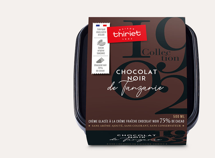 Une crème glacée à la crème fraîche au goût puissant et intense de Chocolat Noir de Tanzanie 75% de cacao. Une teneur en chocolat exceptionnelle de 30% pour vous proposer toute la gourmandise de ce chocolat noir unique. Découvrez notre gamme de sorbets Plein Fruit et crèmes glacées Collection 1902, une réalisée dans notre Atelier des Vosges avec les meilleurs ingrédients d'origine !*Tous les ingrédients ne sont pas d'origine France