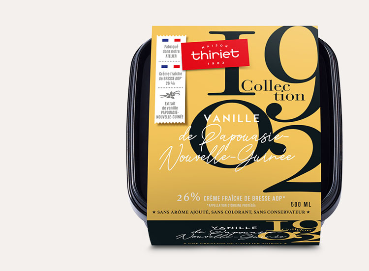 Une crème glacée à la crème fraîche de Bresse AOP**, au goût délicat et onctueux de vanille de Papouasie Nouvelle Guinée. Découvrez notre gamme de sorbets Plein Fruit et crèmes glacées Collection 1902, réalisée dans notre Atelier des Vosges avec les meilleurs ingrédients d'origine !*Tous les ingrédients ne sont pas d'origine France