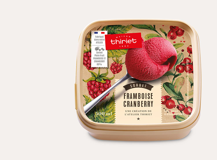 Un savoureux sorbet Plein Fruit 60% framboise - cranberry au goût naturel et délicat de ce mélange mêlant l'astringence de la cranberry à la douceur de la framboise. Découvrez notre assortiment de sorbets Plein Fruit aux saveurs naturellement fruitées et aux notes originales ainsi que nos crèmes glacées aux parfums étonnants et gourmands au sein de notre gamme de bacs Premium.*Tous les ingrédients ne sont pas d'origine France