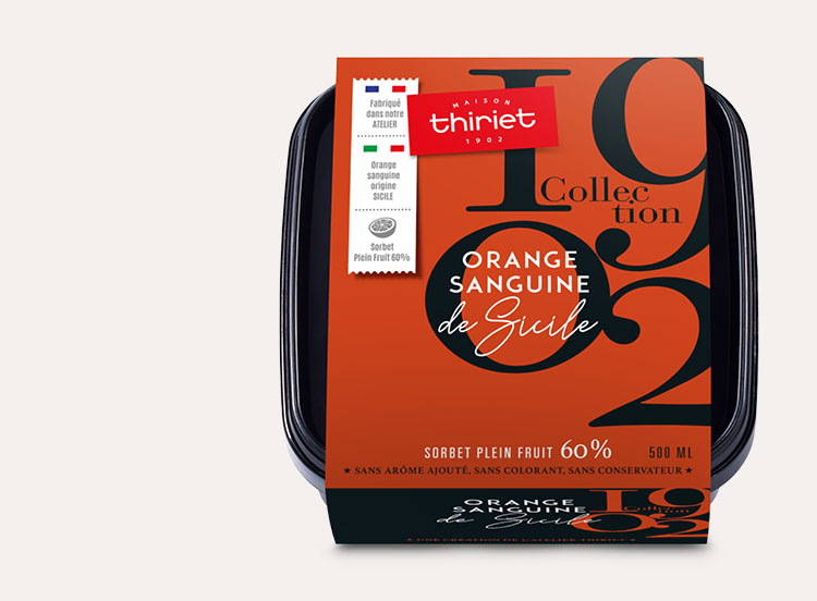 Un sorbet Plein Fruit au goût subtile et parfumé de l'orange sanguine de Sicile. Une teneur en fruit exceptionnelle de 60% pour vous proposer toute l'intensité de ce fruit sélectionné.Réalisé au sein de notre Atelier Thiriet dans les Vosges. Découvrez notre gamme de sorbets Plein Fruit et crèmes glacées Collection 1902, réalisée dans notre Atelier des Vosges avec les meilleurs ingrédients d'origine !*Tous les ingrédients ne sont pas d'origine France