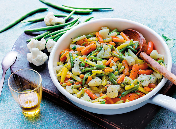 D'origine France ces jeunes carottes, fleurettes de choux fleurs, haricots verts, haricots beurre et julienne de carottes jaunes, colorent cette poêlée déjà assaisonnée à l'huile d'olive vierge extra et au persil et prête à déguster. Rien de plus facile pour consommer des légumes en toute saison.