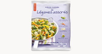 Dans une poêle chaude sans matière grasse, versez la quantité souhaitée de poêlée encore surgelée et faites cuire à feu moyen, en remuant régulièrement, pendant les temps indiqués ci-dessous :