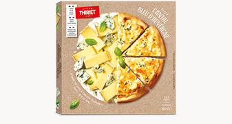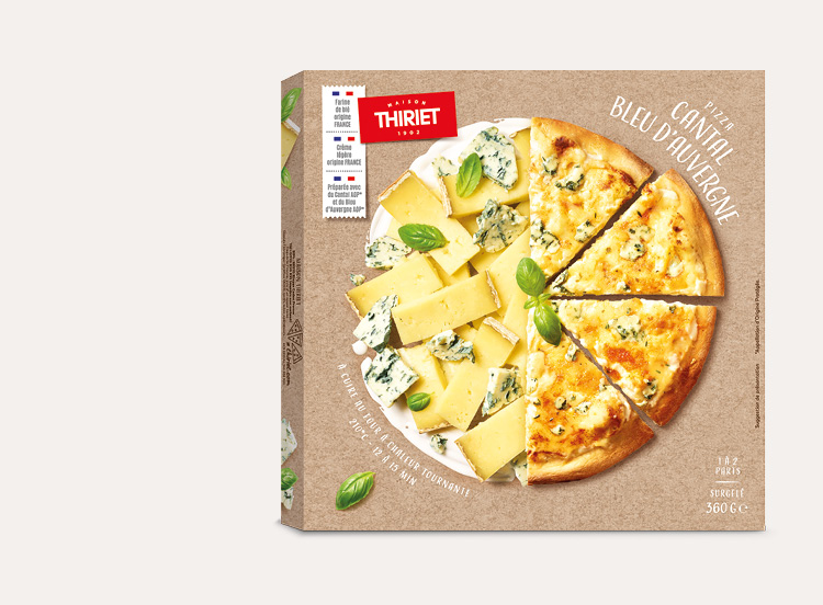 Dénomination de vente : Produit surgelé. Pizza garnie de crème épaisse légère, Cantal et Bleu d'Auvergne