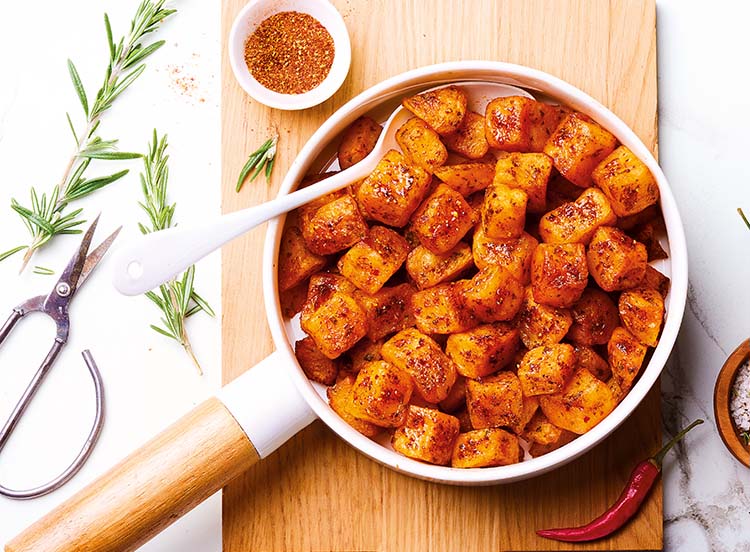 L'accompagnement qui change tout ! Nos pommes de terre rissolées origine France, sont délicatement relevées par la saveur subtile du Piment d'Espelette AOP*. Déjà préfrites, ces pommes de terre sont prêtes en un clin d'œil pour sublimer vos viandes et volailles. La qualité et le goût, sans effort !