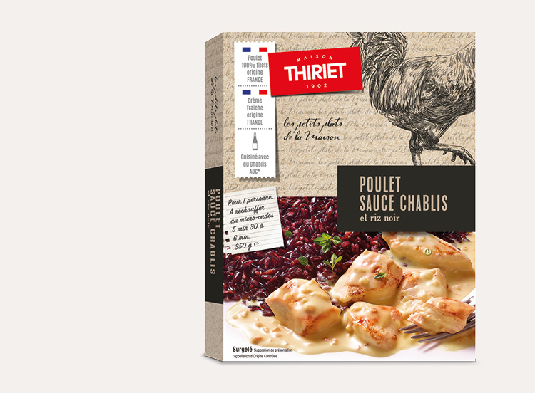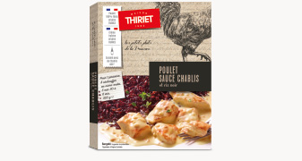 Des morceaux de filets de poulet origine France, nappés d’une sauce onctueuse cuisinée au Chablis AOC* et à la crème fraîche origine France, le tout délicatement relevé de subtils éclats de noisette.
