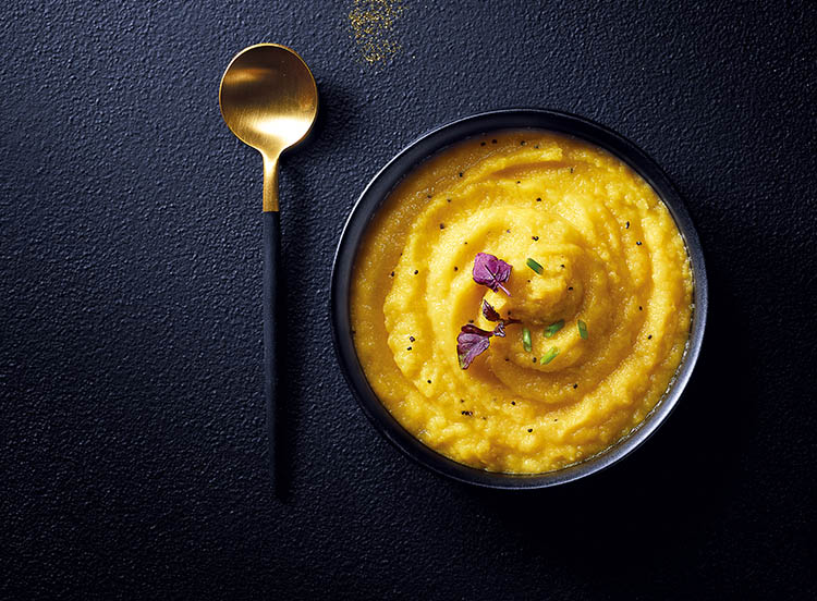 Une purée de carottes jaunes (origine France) et de pommes de terre (origine France), agrémentez de lait de coco pour une saveur délicate et parfumée. Cette purée haute en couleur accompagnera vos plats de fêtes mais aussi vos poissons et noix de Saint-Jacques grâce à sa recette gourmande et à une texture onctueuse.