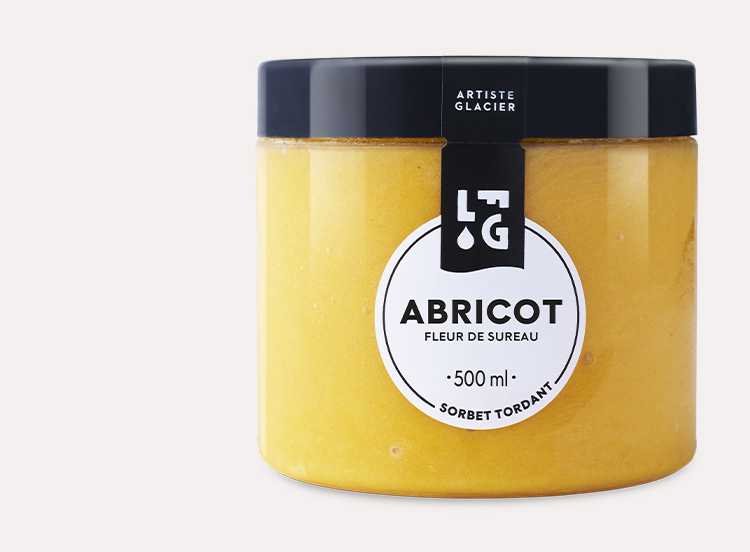 Dénomination de vente : Produit surgelé. Sorbet Plein Fruit Abricot Fleur de Sureau