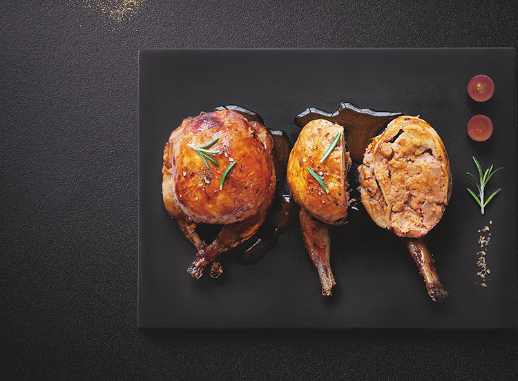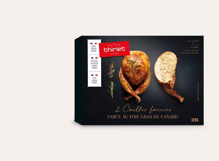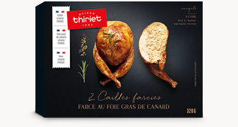 Des cailles origine France semi-désossées avec une farce fondante au foie gras de canard origine France et à la crème. De la volaille prête à cuire. Pour étonner vos convives sans cuisiner.